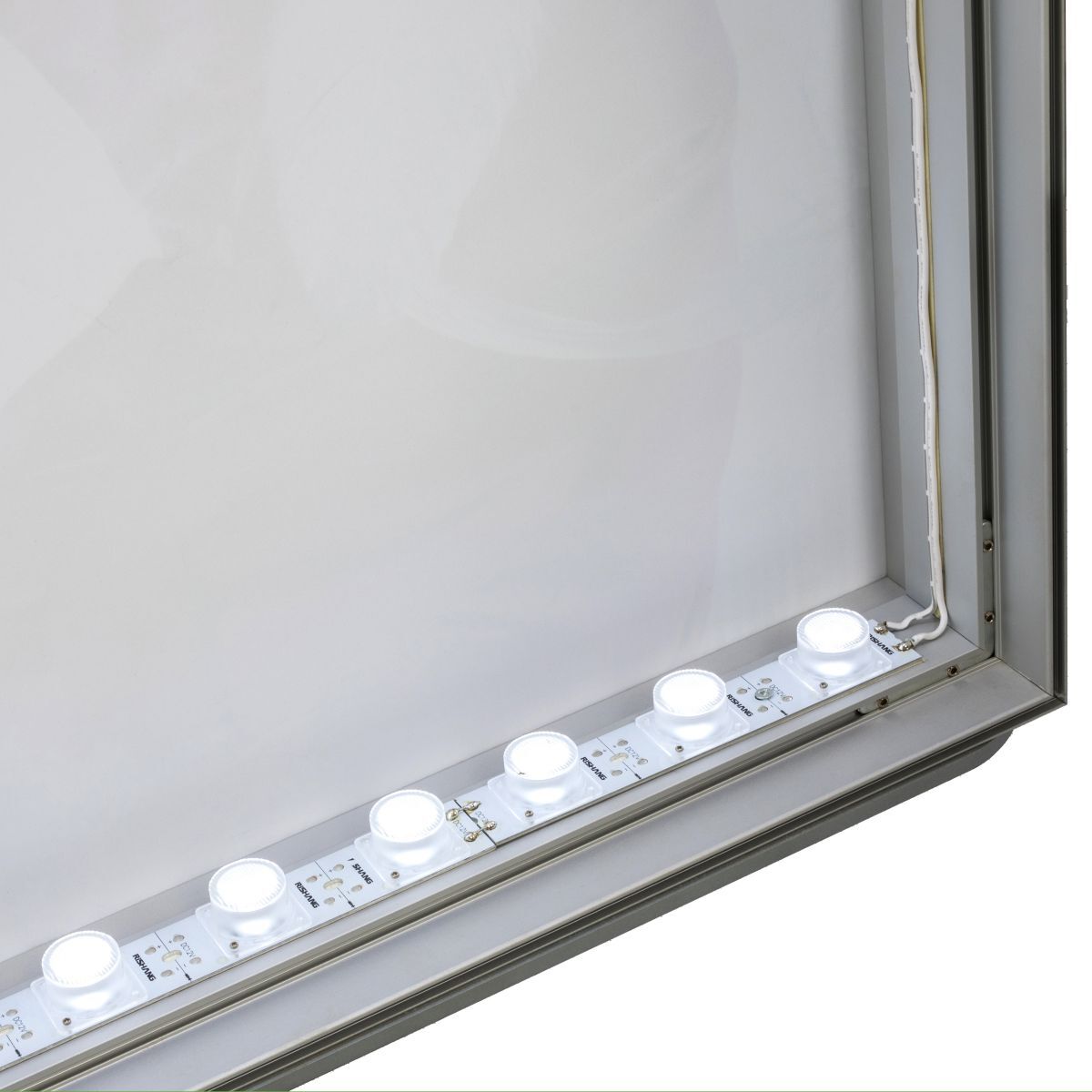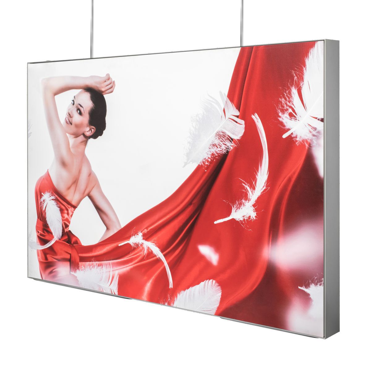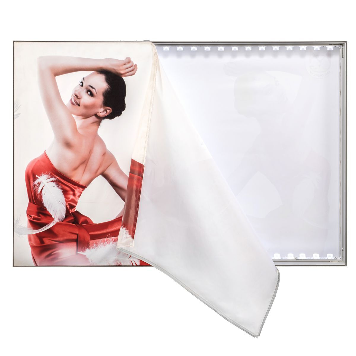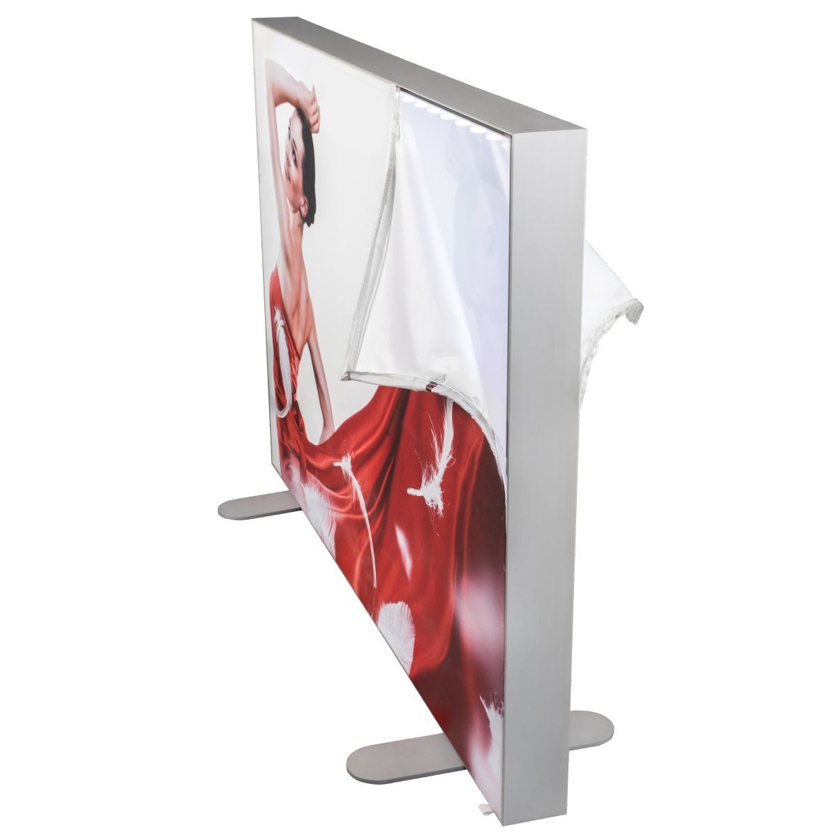 The fabric graphic is inserted into the lightbox with a thin silicone strip, which is sewn on the edge of the pattern and neatly installed in a small channel around the extrusion of the aluminum frame to form a frameless look. The result is a drum-shaped, compact fabric pattern that illuminates evenly from the back. Moreover, the fabrics are flame retardant, scratch-resistant and washable, which are very suitable for indoor environments, because they have the least light reflection.